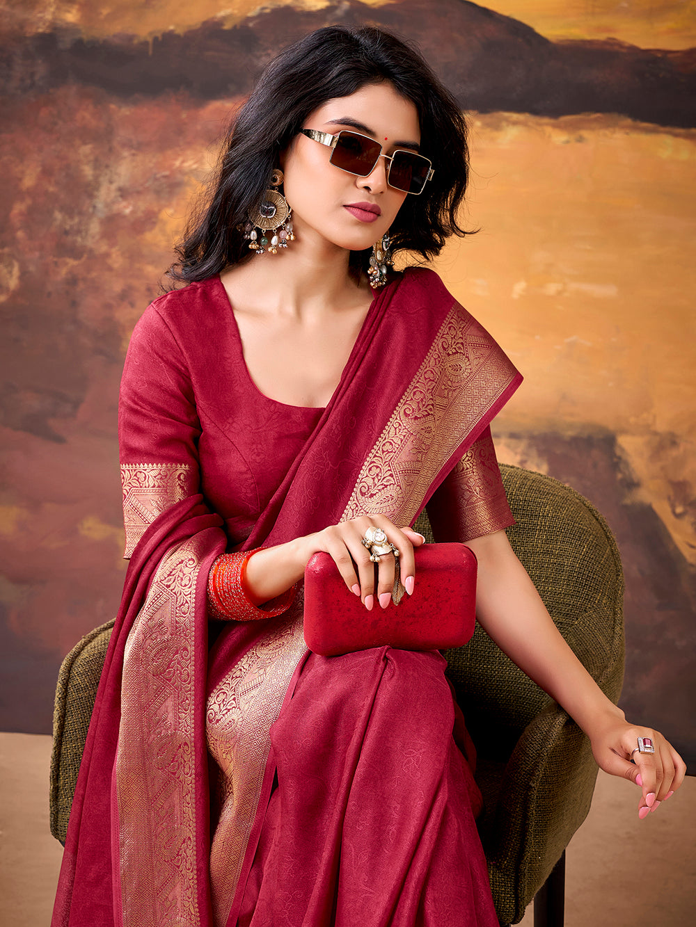Crimson Color Zari Weaving Work Mass Mello Saree