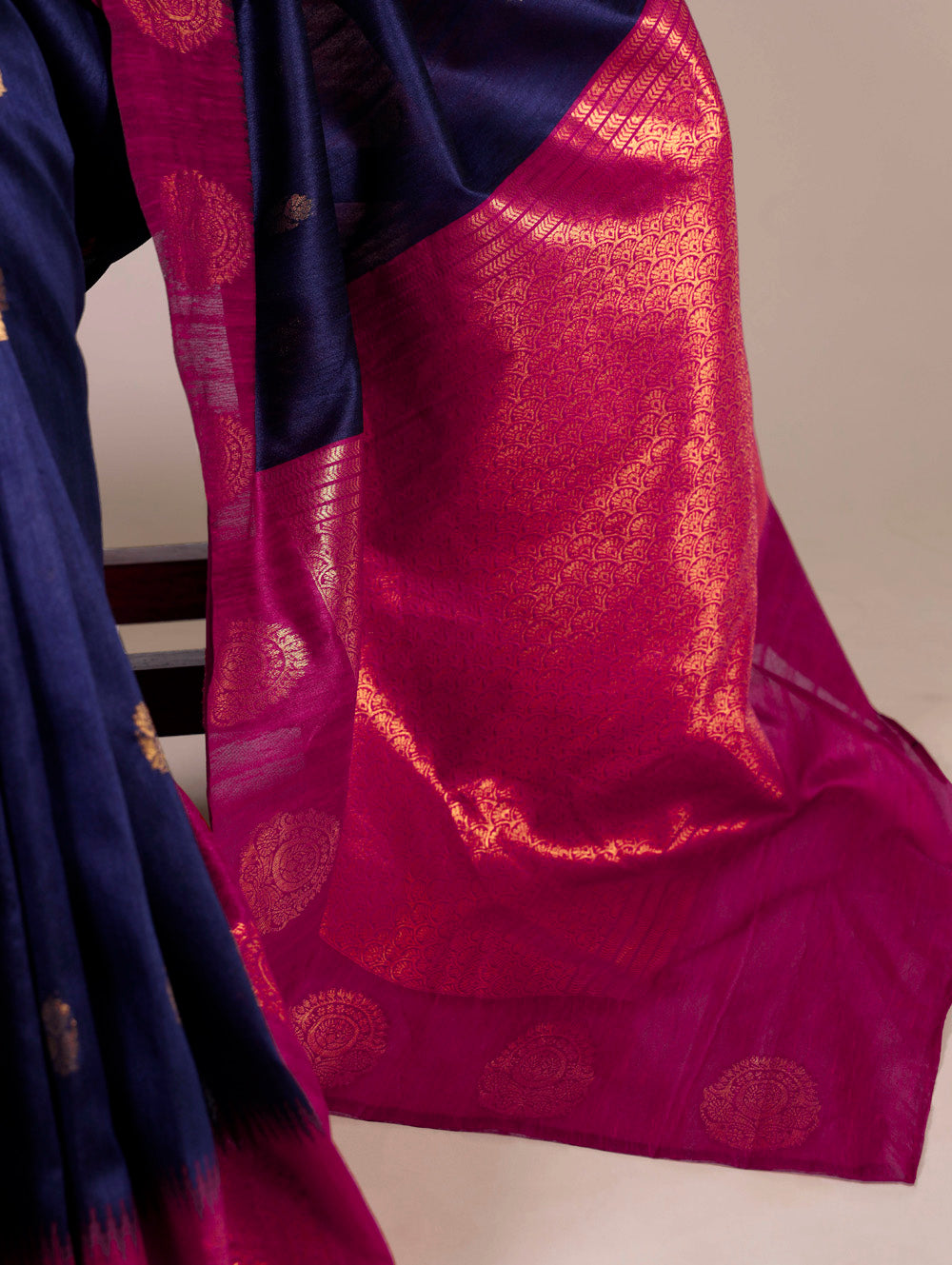 Adorned with beautiful zari weaving work in shades of navy blue color, made from poly cotton. It...
