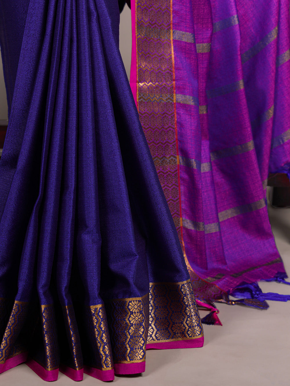 Navy Blue Color Zari Weaving Work Poly Cotton Saree By Yana Fab