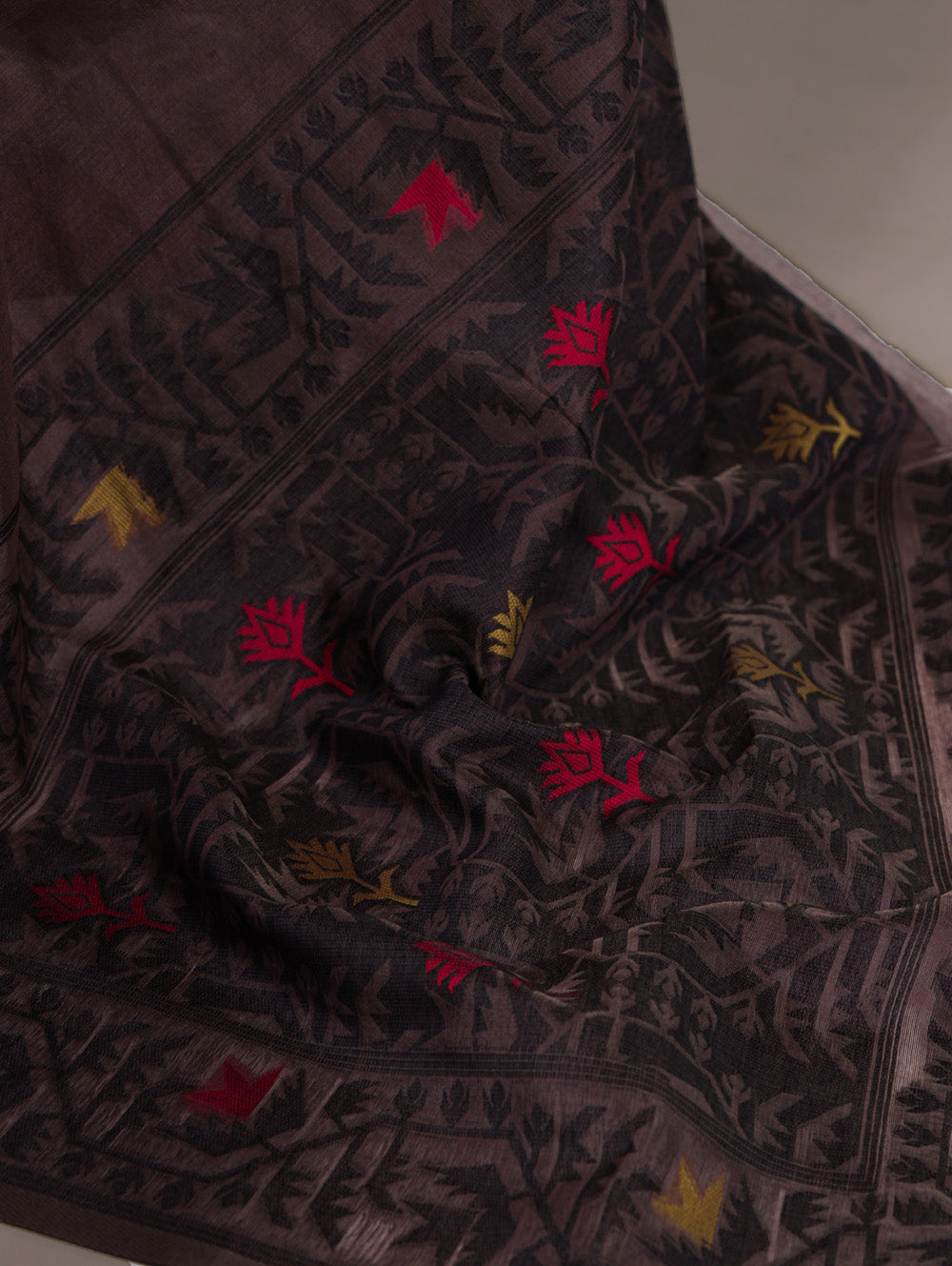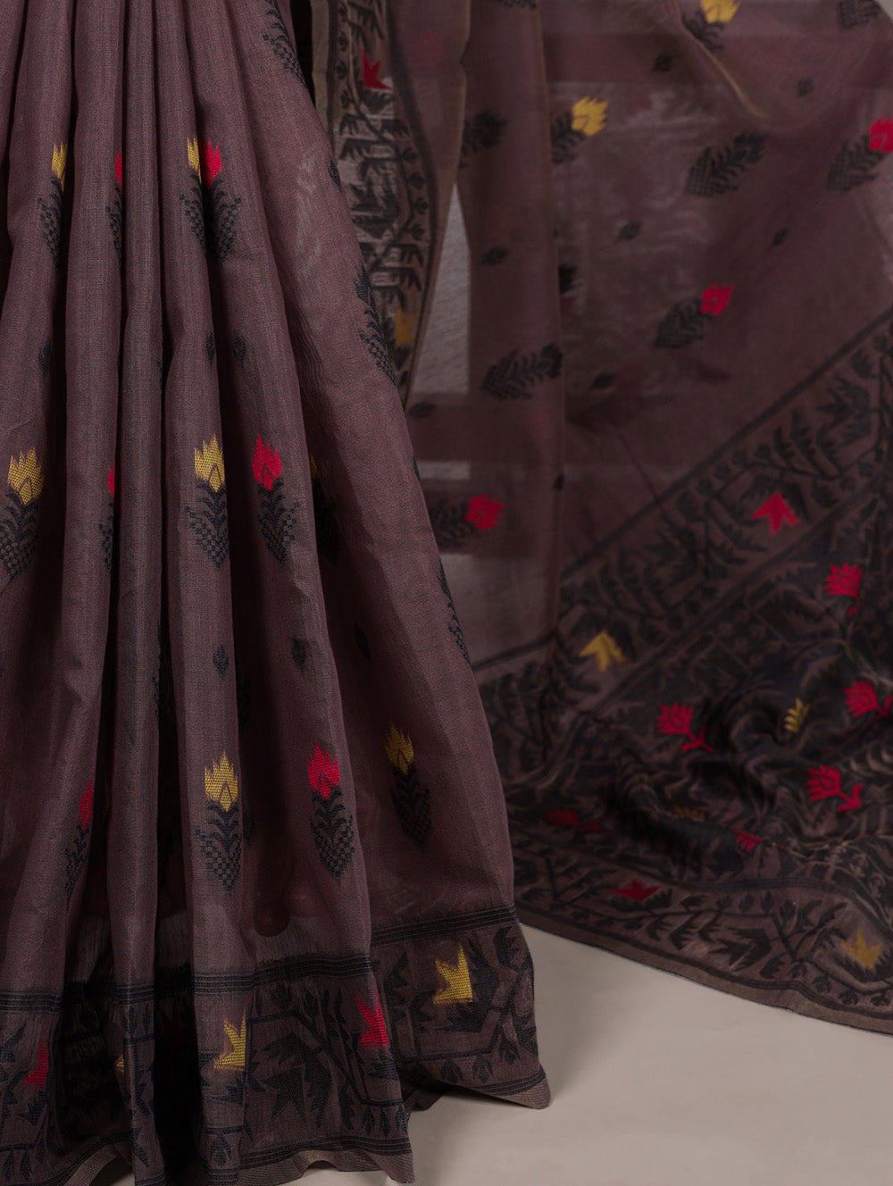 Onion Color Thread Embroidery Work Poly Cotton Saree
