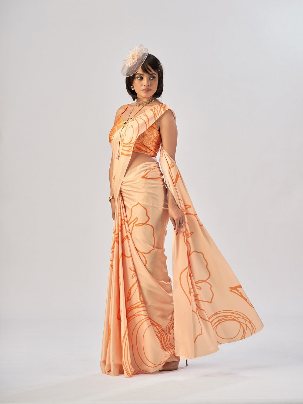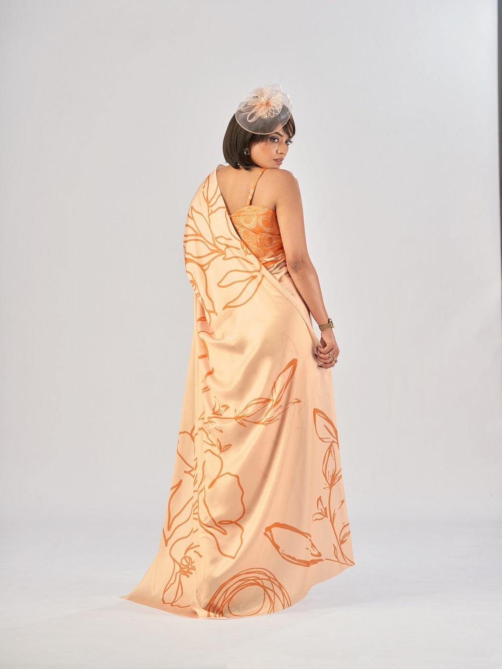 Orange color potli in jacquard silk material with peral lace border zari weaving work.