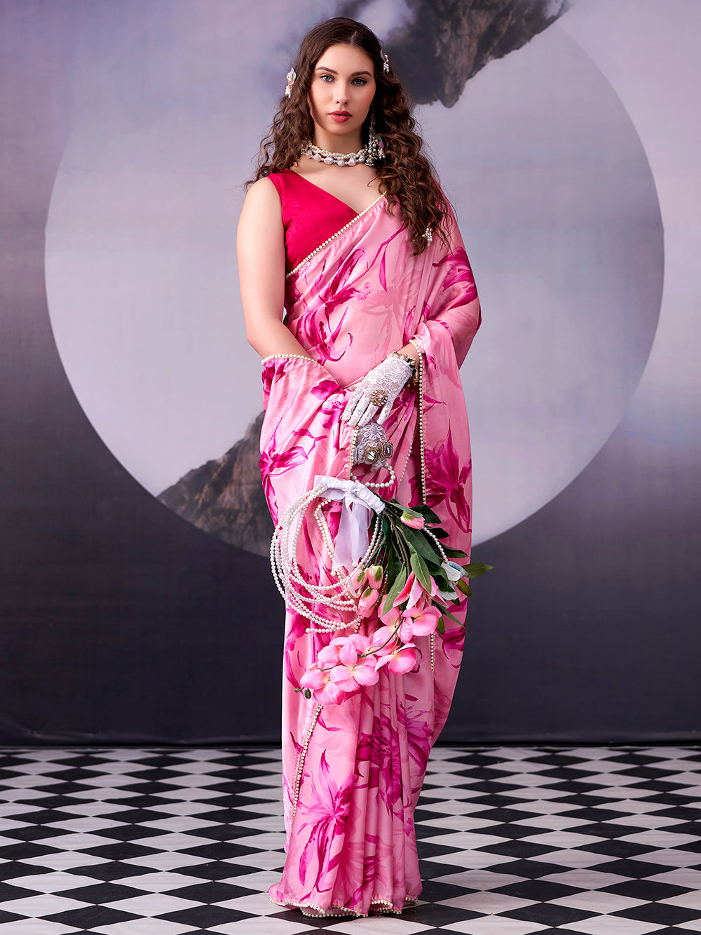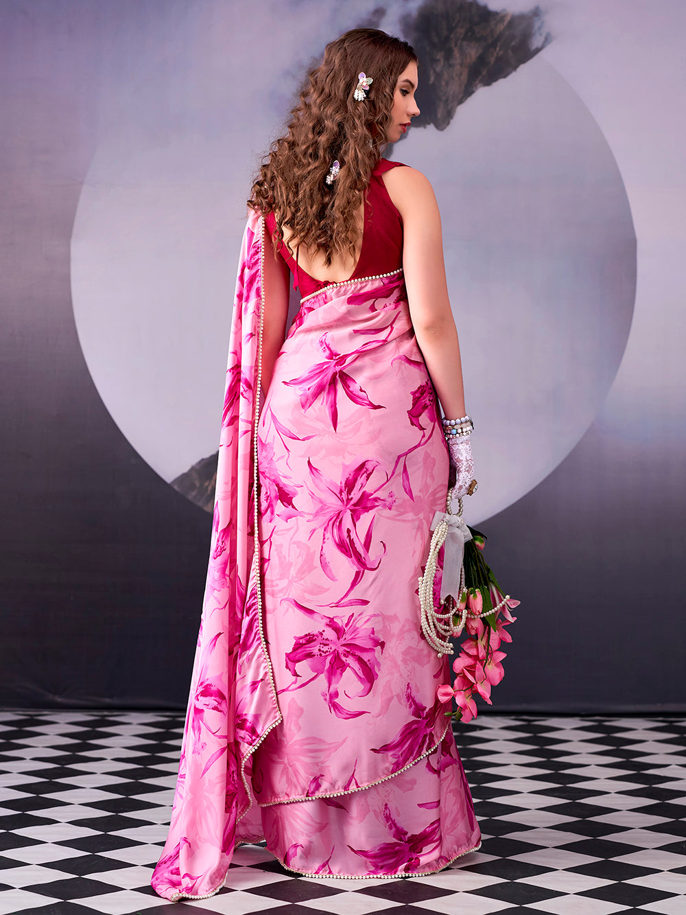 Pink Color Fancy Floral Saree