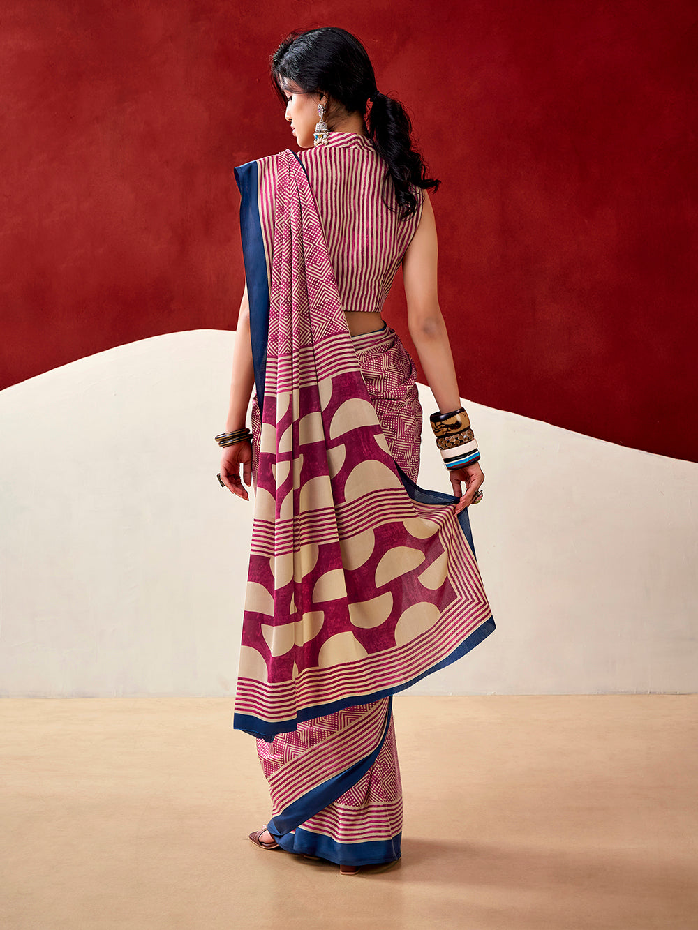 Elegant and timeless, this saree blends graceful drape with fine detailing.