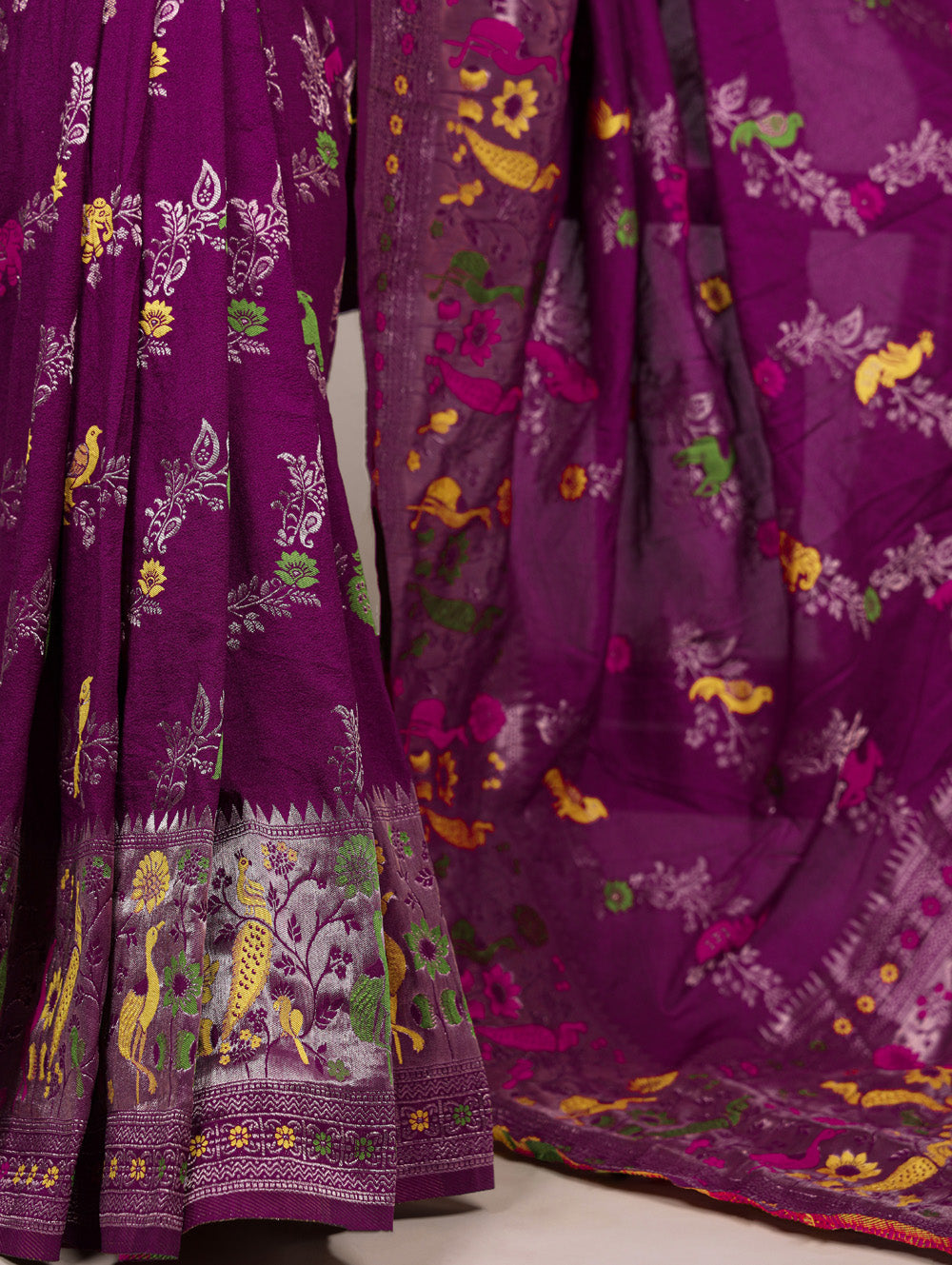 Drape yourself in timeless elegance with this luxurious purple color naylon saree, exuding a rich weaving work....