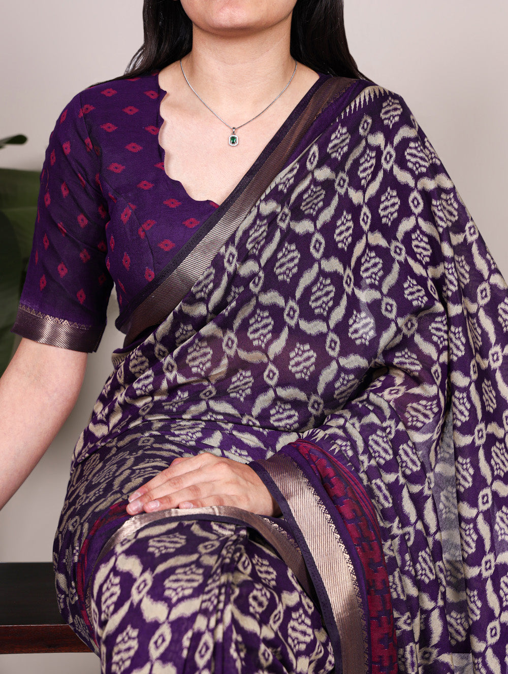 Every pleat tells a story of tradition every weave reflects timeless beauty. This purple color printed with zari weaving border saree crafted from polyester viscose chanderi material.