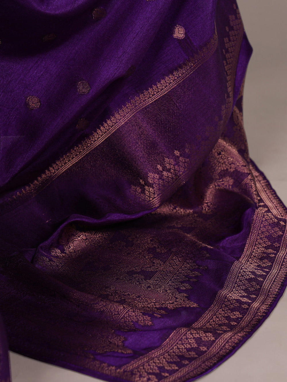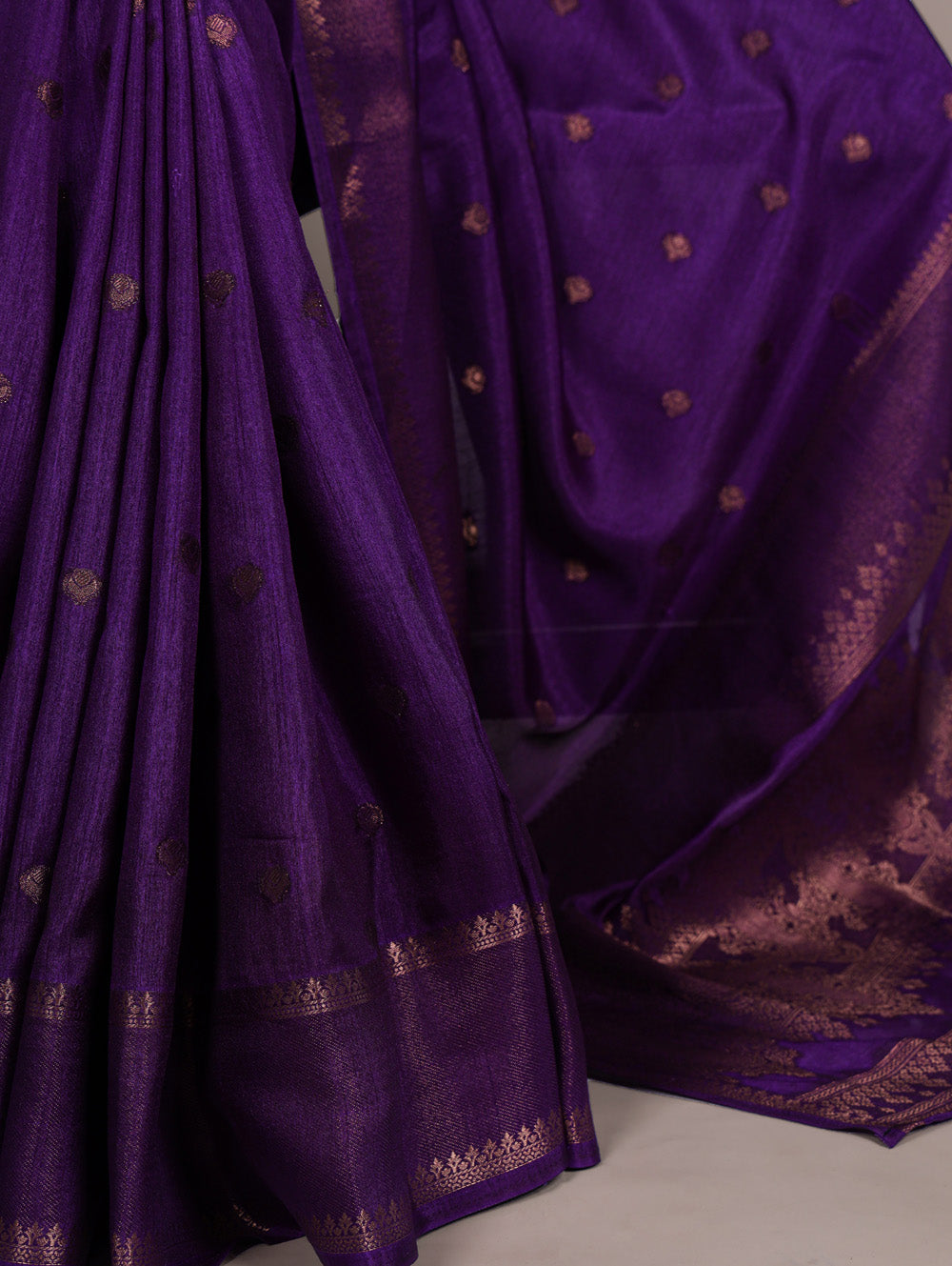 Let your elegance reflect and get compliments with this beautiful purple color roop silk saree made with...